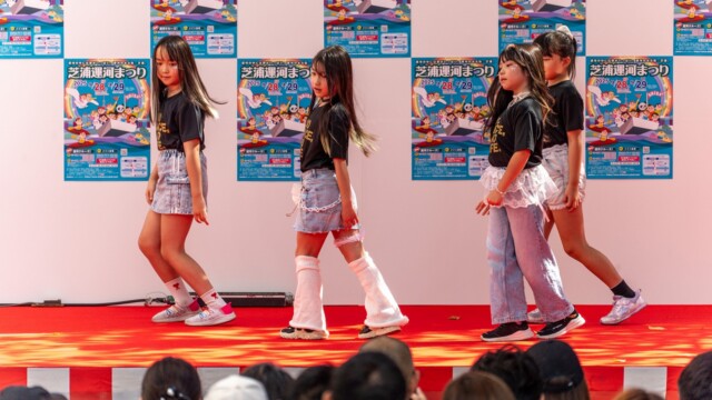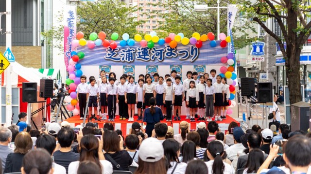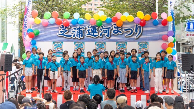 式典後は、迫力満点の大角太鼓に続き、芝浦小・芝浜小の合唱、キッズのダンス、歌のライブなど盛りだくさんです。